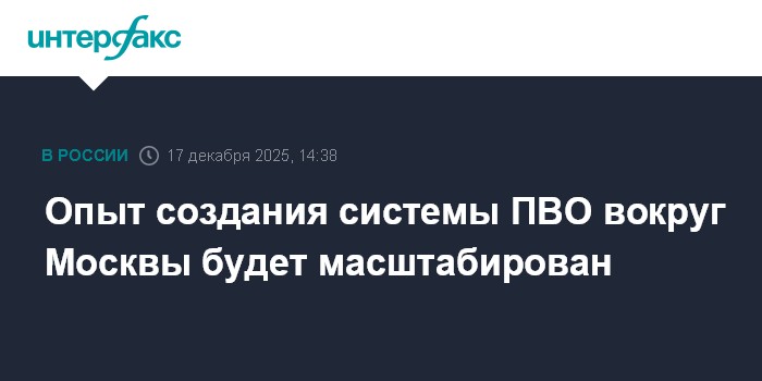 Москва. 17 декабря. INTERFAX.RU - Опыт создания системы противовоздушной обороны вокруг Москвы будет использован, заявил министр обороны Андрей Белоусов на расширенной коллегии ведомства.