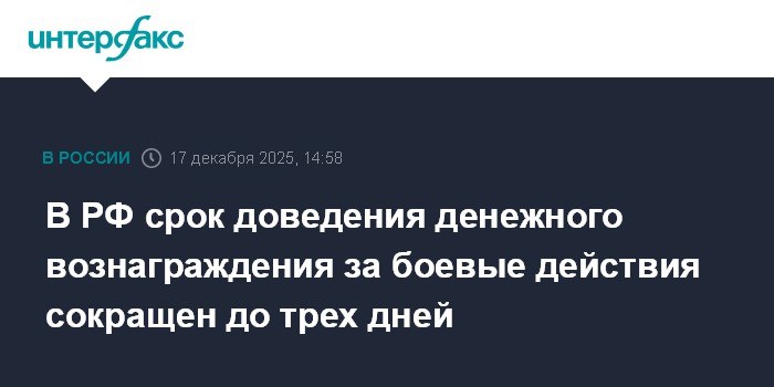 В РФ срок доведения денежного вознаграждения за боевые действия сокращен до трех дней