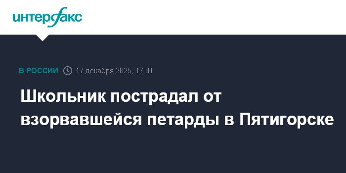 Москва. 17 декабря. INTERFAX.RU - Ученик одной из школ Пятигорска (Ставропольский край) получил травму в результате взрыва петарды, сообщил глава города Дмитрий Ворошилов.