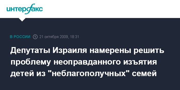 Иерусалим. 21 октября. ИНТЕРФАКС - Участники круглого стола в парламенте Израиля подвергли жесткой критике социальные службы страны, по инициативе которых более 2000 детей ежегодно изымаются из якобы неблагополучных семей.