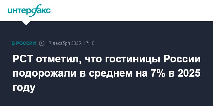 РСТ отметил, что гостиницы России подорожали в среднем на 7% в 2025 году