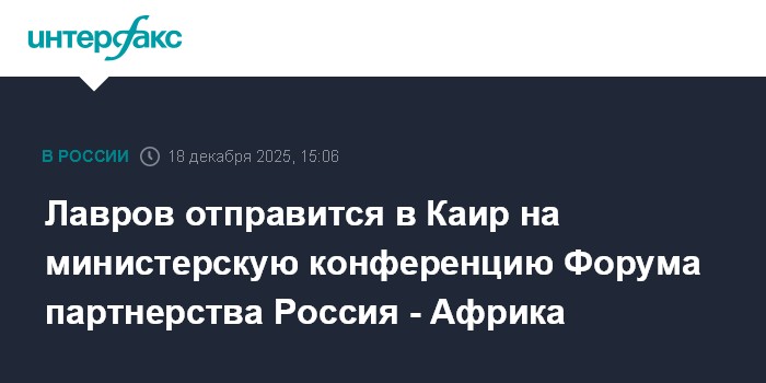 "19-20 декабря глава российского внешнеполитического ведомства примет участие во второй министерской конференции Форума партнерства Россия - Африка, который состоится в Каире и станет первым мероприятием в таком формате на африканской земле", - сказала она на брифинге.