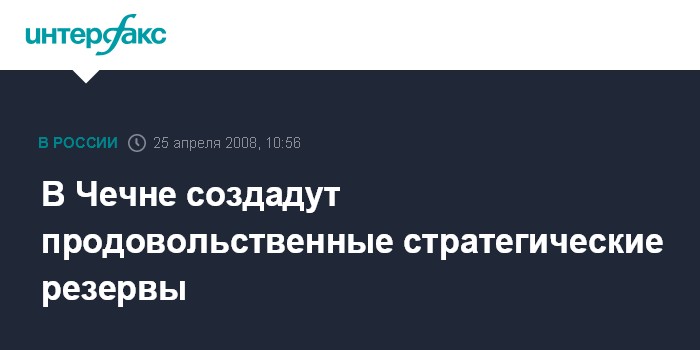 Грозный. 25 апреля. INTERFAX.RU - Продовольственные стратегические резервы будут созданы в Чечне, сообщил "Интерфаксу" в пятницу вице-премьер правительства ЧР Абубакар Эдельгериев.