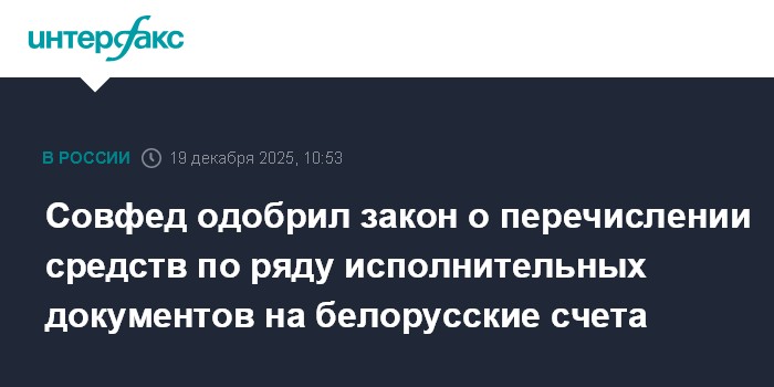 Совфед одобрил закон о перечислении средств по ряду исполнительных документов на белорусские счета