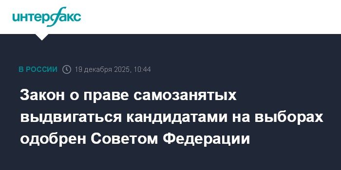 Москва. 19 декабря. INTERFAX.RU - Совет Федерации на заседании в пятницу одобрил закон о праве кандидата на выборах указать в качестве рода занятий статус самозанятого.
