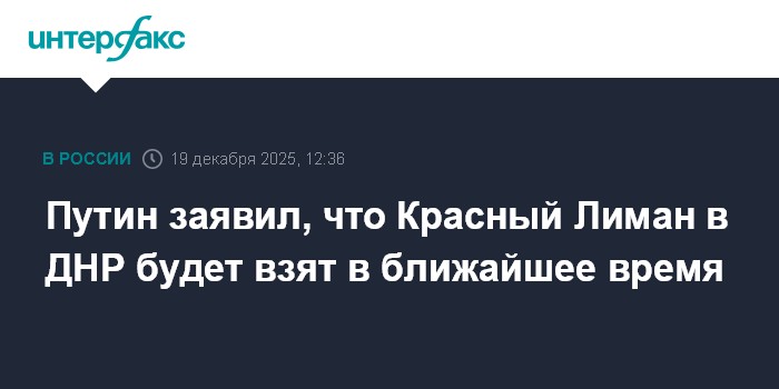 Москва. 19 декабря. INTERFAX.RU - Вооруженные силы РФ в ближайшее время возьмут под контроль город Красный Лиман в ДНР, после него движение российских войск будет продолжено к одному из основных укрепрайонов ВСУ Славянску, заявил президент России Владимир Путин.