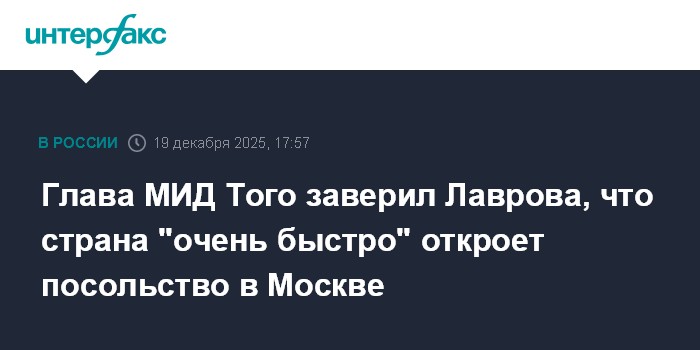 Ранее Лавров в статье для африканских СМИ отмечал, что Россия приветствует планы Того открыть диппредставительство в Москве.