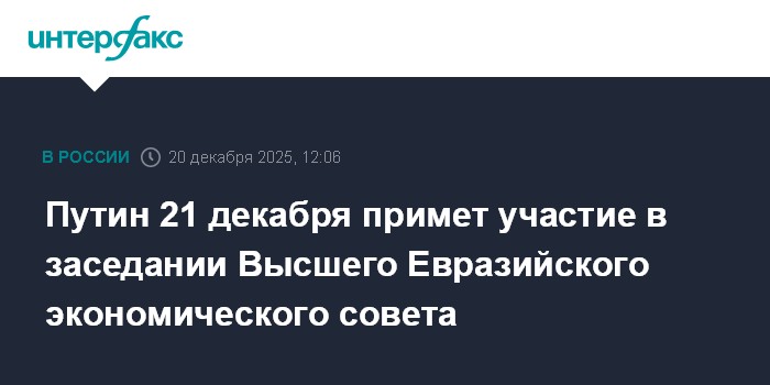 Путин 21 декабря примет участие в заседании Высшего Евразийского экономического совета