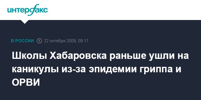 Приказ о переносе сроков был издан в управлении образования администрации Хабаровска в связи с резко возросшим количеством случаев заболевания детей школьного возраста острыми респираторными вирусными инфекциями, в целях предупреждения массового распространения гриппа и других ОРВИ среди детей и подростков.