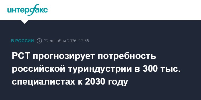РСТ прогнозирует потребность российской туриндустрии в 300 тыс. специалистах к 2030 году