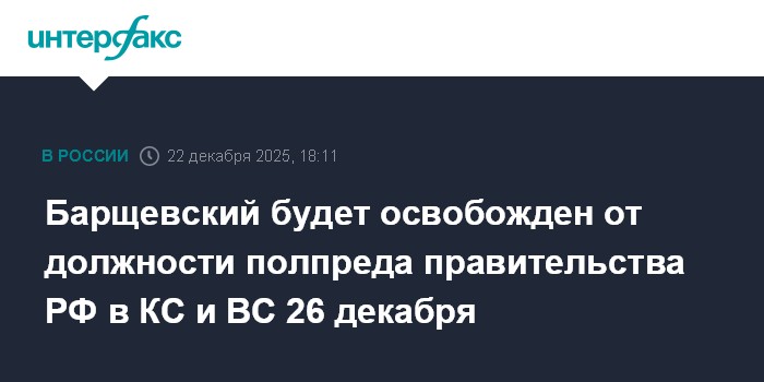 "Освободить Барщевского Михаила Юрьевича с 26 декабря 2025 года от должности полномочного представителя правительства Российской Федерации в Конституционном суде Российской Федерации и в Верховном суде Российской Федерации в связи с выходом на пенсию", - говорится в распоряжении правительства, опубликованном на официальном интернет-портале правовой информации.