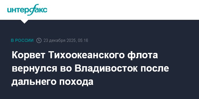 Москва. 23 декабря. INTERFAX.RU - Корвет "Гремящий" Тихоокеанского флота после успешного выполнения задач дальнего морского похода в Азиатско-Тихоокеанском регионе вернулся во Владивосток, сообщает во вторник пресс-служба флота.