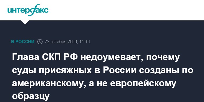 Москва. 22 октября. INTERFAX.RU - Председатель Следственного комитета при прокуратуре РФ Александр Бастрыкин считает, что России больше подошел бы европейский образец судов присяжных, чем американский.