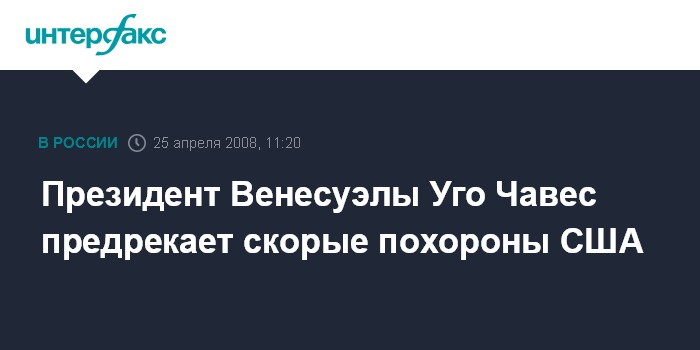 Каракас. 25 апреля. INTERFAX.RU - Президент Венесуэлы Уго Чавес в очередной речи, которая транслировалась в эфире национального телевидения, заявил, что в этом веке США будут похоронены.