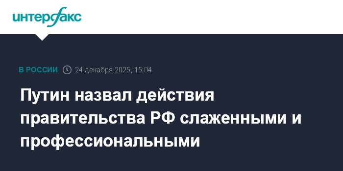 Москва. 24 декабря. INTERFAX.RU - Правительство РФ действует слаженно и профессионально, Россия реализует повестку, нацеленную на позитивные изменения в жизни граждан страны, заявил президент РФ Владимир Путин.