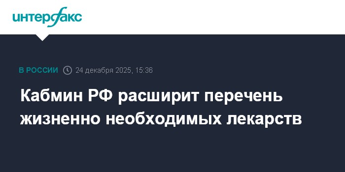 Москва. 24 декабря. INTERFAX.RU - Правительство РФ расширит перечень жизненно необходимых и важнейших лекарств (ЖНВЛ) еще на восемь позиций, заявил премьер Михаил Мишустин.
