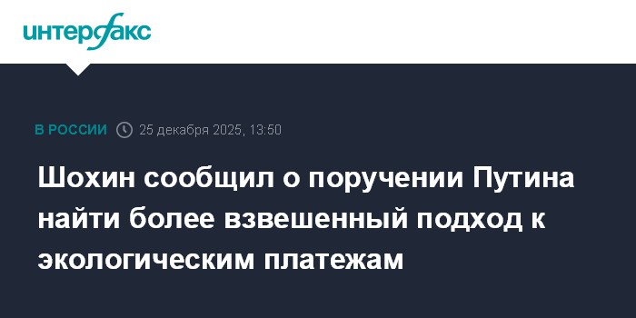 Шохин сообщил о поручении Путина найти более взвешенный подход к экологическим платежам