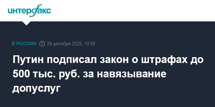 Путин подписал закон о штрафах до 500 тыс. руб. за навязывание допуслуг