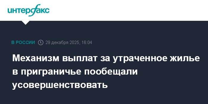 Москва. 29 декабря. INTERFAX.RU - Механизм предоставления выплат жителям приграничных регионов России за утраченное жилье будет усовершенствован, заявил телеканалу "Россия 24" министр строительства и ЖКХ Ирек Файзуллин.