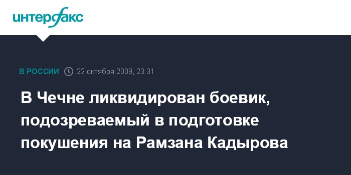 В Чечне ликвидирован боевик, подозреваемый в подготовке покушения на Рамзана Кадырова