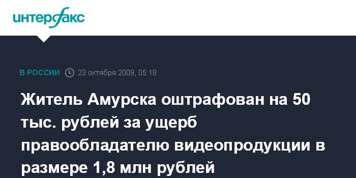 Житель Амурска оштрафован на 50 тыс. рублей за ущерб правообладателю видеопродукции в размере 1,8 млн рублей