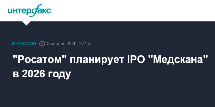 Москва. 3 января. INTERFAX.RU - "Росатом" планирует IPO "Медскана" в 2026 г., сообщил гендиректор госкорпорации Алексей Лихачев в интервью телеканалу "Россия 24" (ВГТРК).
