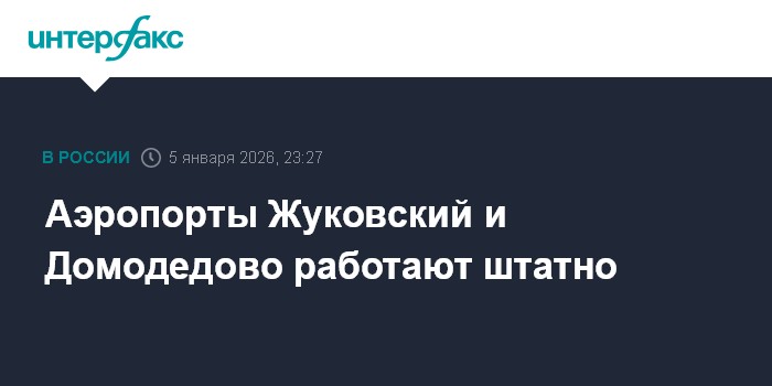 Москва. 5 января. INTERFAX.RU - В аэропортах "Жуковский" (Раменское) и "Домодедово" сняты ограничения на прием и выпуск воздушных судов, сообщили в телеграм-канале Росавиации.