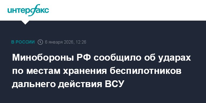 Москва. 6 января. INTERFAX.RU - Российские военные нанесли удары по местам хранения украинских беспилотников дальнего действия, сообщило Минобороны РФ во вторник.