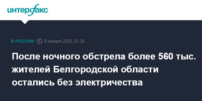 После ночного обстрела более 560 тыс. жителей Белгородской области остались без электричества