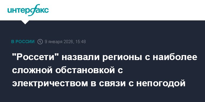 "Россети" назвали регионы с наиболее сложной обстановкой с электричеством в связи с непогодой