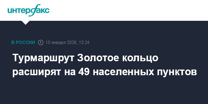 Москва. 10 января. INTERFAX.RU - Национальный туристический маршрут Золотое кольцо России станет больше: помимо 9 городов к нему добавили 49 населенных пунктов, сообщает пресс-служба зампреда правительства РФ Дмитрия Чернышенко.