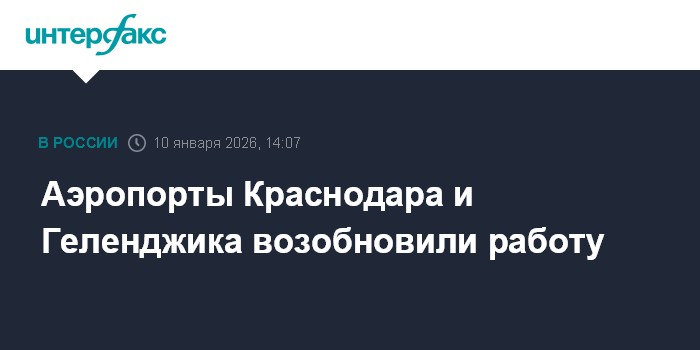 Москва. 10 января. INTERFAX.RU - Временные ограничения на полеты сняты в аэропортах Краснодара и Геленджика, сообщил представитель Росавиации Артем Кореняко в субботу в своем телеграм-канале.