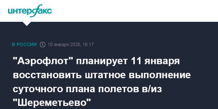 "К 08:00 11 января авиакомпания планирует полностью восстановить штатное выполнение суточного плана полетов в/из базового аэропорта", - говорится в сообщении в телеграм-канале "Аэрофлота".