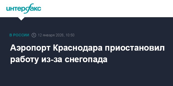 Москва. 12 января. INTERFAX.RU - Аэропорт Краснодара приостановил работу до 15:00 из-за снегопада для расчистки аэродрома, сообщается в телеграм-канале аэропорта.