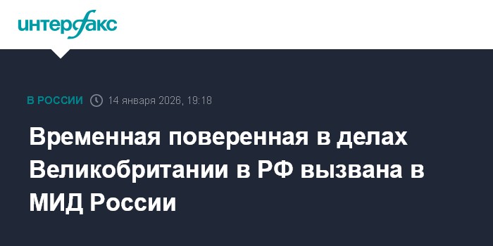 Москва. 14 января. INTERFAX.RU - Временная поверенная в делах Великобритании в РФ вызвана в МИД России, сообщили на Смоленской площади.