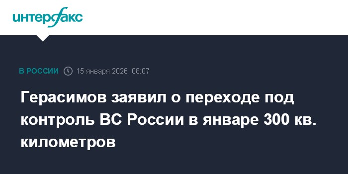 Москва. 15 января. INTERFAX.RU - С начала января российская армия взяла под контроль более 300 кв. км территории в зоне спецоперации, заявил на совещании на пункте управления группировки "Центр" начальник Генштаба Валерий Герасимов.