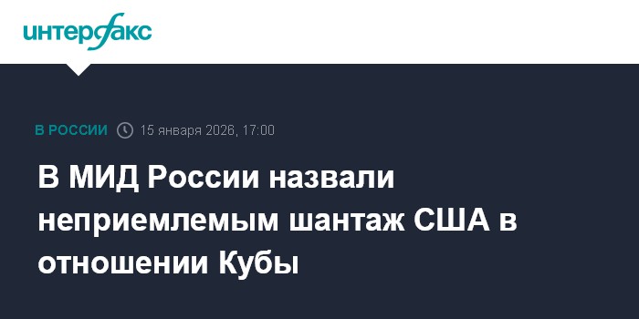 Москва. 15 января. INTERFAX.RU - В Москве обеспокоены эскалацией ситуации вокруг Кубы, считают неприемлемым язык шантажа США в отношении этой страны, заявила на брифинге представитель МИД России Мария Захарова.