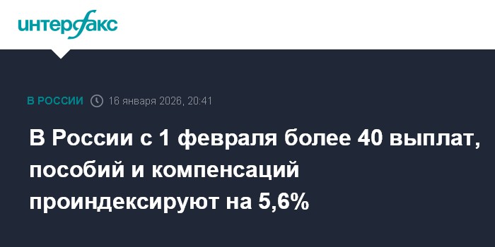 В России с 1 февраля более 40 выплат, пособий и компенсаций проиндексируют на 5,6%