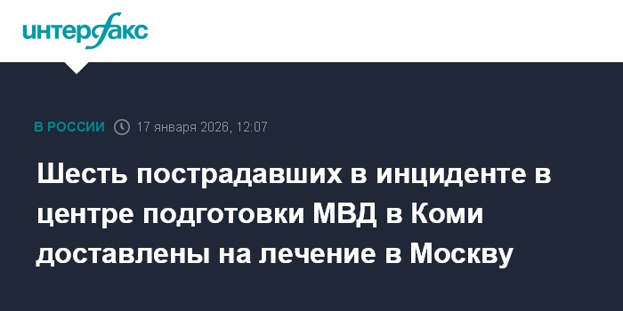 Москва. 17 января. INTERFAX.RU - Шестеро пострадавших при инциденте в учебном центре МВД в Сыктывкаре переведены в Москву, сообщается в телеграм-канале министерства здравоохранения Республики Коми в субботу.
