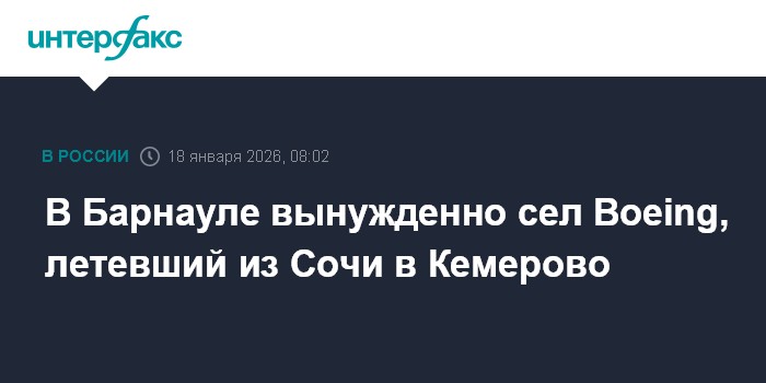 "По предварительным данным, сегодня около 08:00 (04:00 мск) в ходе выполнения рейса по маршруту Сочи-Кемерово Boeing-737-800 авиакомпании "Северный ветер" по технической причине осуществил незапланированную посадку в международном аэропорту Барнаула имени Г.С. Титова", - говорится в сообщении.