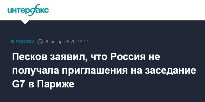 Песков заявил, что Россия не получала приглашения на заседание G7 в Париже