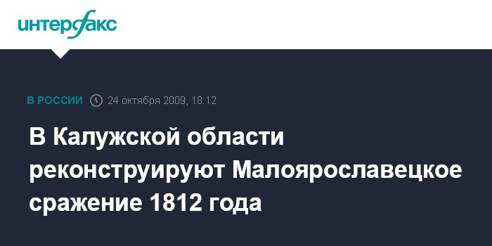 Калуга. 24 октября. INTERFAX.RU - Военно-исторические клубы России проведут в воскресенье реконструкцию Малоярославецкого сражения 1812 года, сообщили "Интерфаксу" в региональном министерстве культуры.