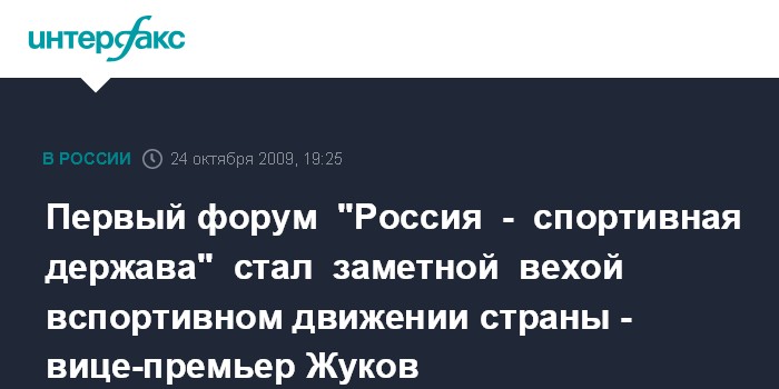 Первый форум "Россия - спортивная держава" стал заметной вехой вспортивном движении страны - вице-премьер Жуков