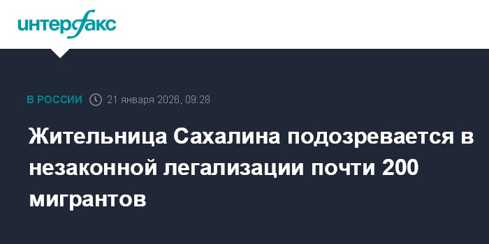 Москва. 21 января. INTERFAX.RU - Полицейские возбудили в отношении жительницы Южно-Сахалинска уголовное дело о незаконной легализации иностранцев, сообщает пресс-служба управления МВД России по Сахалинской области в среду.