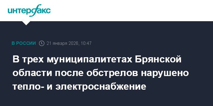 Москва. 21 января. INTERFAX.RU - В Брянской области после ночного обстрела энергетических объектов нарушено электроснабжение и подача тепла, сообщил губернатор региона Александр Богомаз.