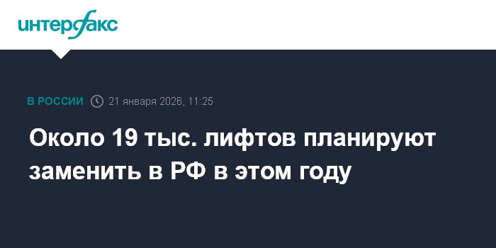 Москва. 21 января. INTERFAX.RU - Порядка 19 тыс. лифтов намерены заменить в России в текущем году, сообщается в канале Минстроя РФ в MAX.