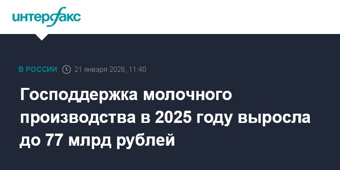Господдержка молочного производства в 2025 году выросла до 77 млрд рублей