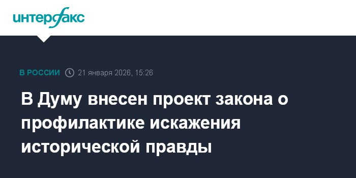 Москва. 21 января. INTERFAX.RU - В Госдуму внесен проект закона об усилении профилактических мер по противодействию искажению исторической правды и "предупреждению и пресечению уклонений от обязанности по защите Отечества".