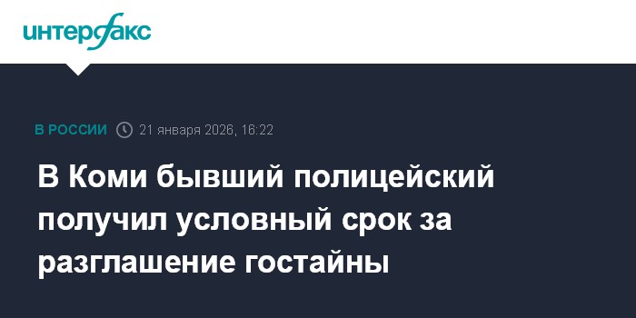 Москва. 21 января. INTERFAX.RU - Верховный суд Коми признал бывшего сотрудника полиции Сыктывкара виновным в разглашении государственной тайны, сообщило региональное управление ФСБ. Подсудимый получил год лишения свободы условно с испытательным сроком 6 месяцев.