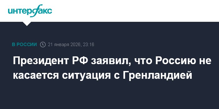 Москва. 21 января. INTERFAX.RU - Россию не касается ситуация, происходящая вокруг Гренландии, заявил президент РФ Владимир Путин.